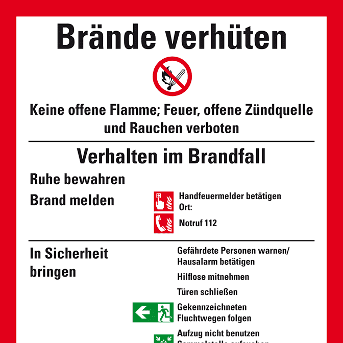 Klare Regeln für sicheres Verhalten im Brandfall.